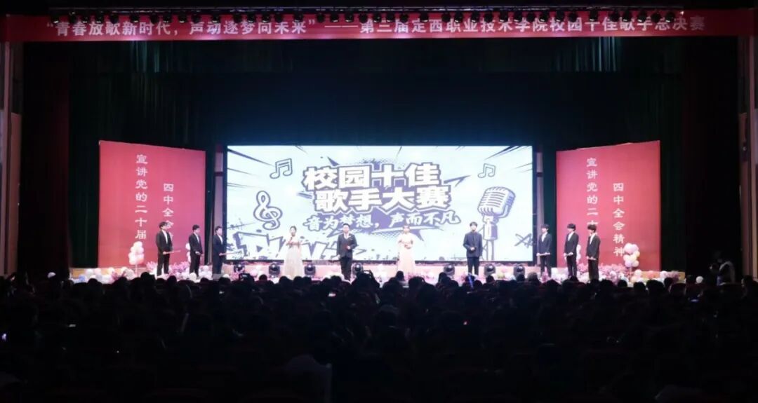 为深入学习贯彻习近平新时代中国特色社会主义思想,全 面落实立德树人根本任务,丰富校园文化生活,展现青年学子 积极向上的精神风貌, 11 月 23 日 19:30,定西职业技术学院 “音为梦想 · 声而不凡”第三届校园“十佳歌手”大赛总决赛 在学院大礼堂盛大举行。灯光璀璨,旋律飞扬, 一场青春与梦 想交织的音乐盛宴,在定职校园激情上演。